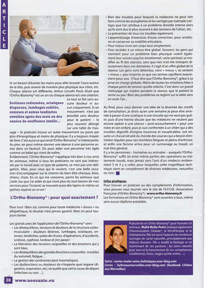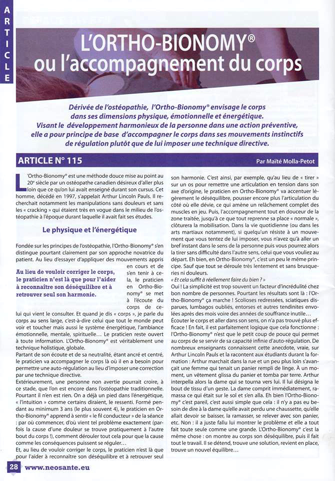 Article publié sur néo-Santé : l’Ortho-bionomy au quotidien, par Maïté Molla Petot